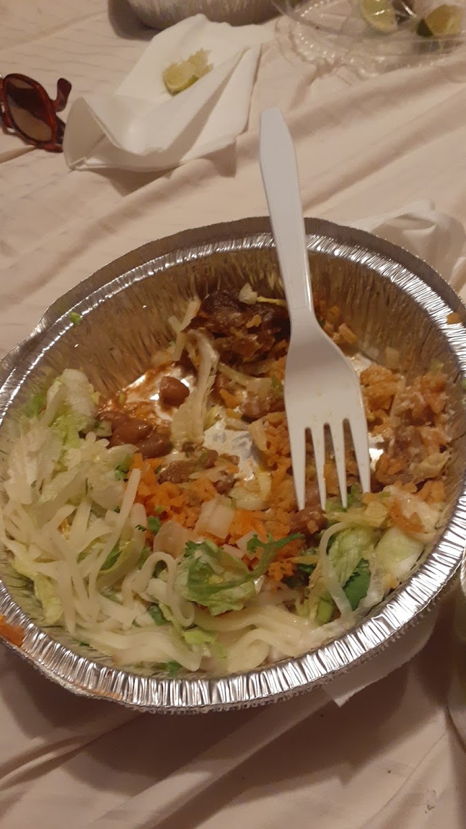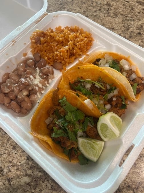 Absolutely delicious food! We purchased two meals with a side of beans and rice. 1.California burrito with pork was so good I wanted to steal it! 2. My street tacos were so delicious, fresh, and filling! New favorite place to get tacos from! 3. Beans and rice were delicious, moist, and they read our tiny delivery note about wanting more cheese! Very attentive service and all around great!